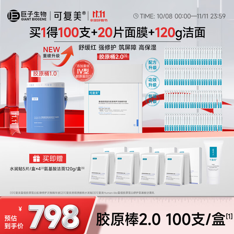 可复美胶原桶重组胶原蛋白肌御修护次抛精华2.0版胶原棒高保湿100支 胶原桶【100支/桶】2.0版
