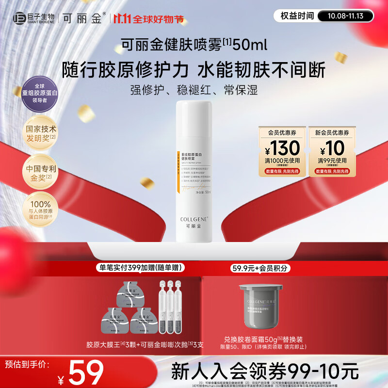 可丽金重组胶原蛋白健肤喷雾50ml补水保湿修护爽肤水护肤品生日礼物女友