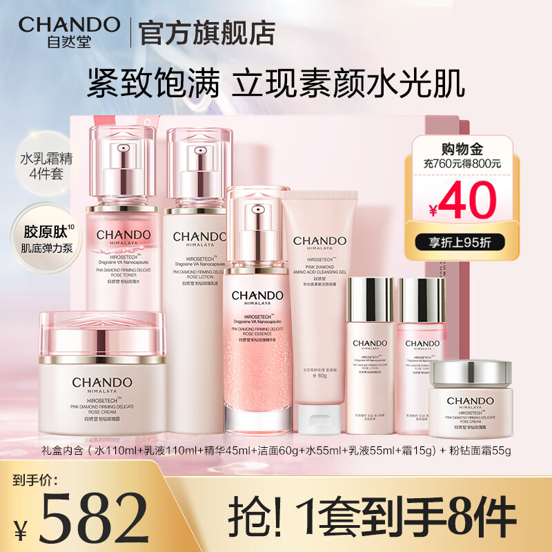 自然堂粉钻紧致套装 水乳礼盒太空玫瑰抗皱保湿送女朋友老婆生日礼物 粉钻水乳霜精套装