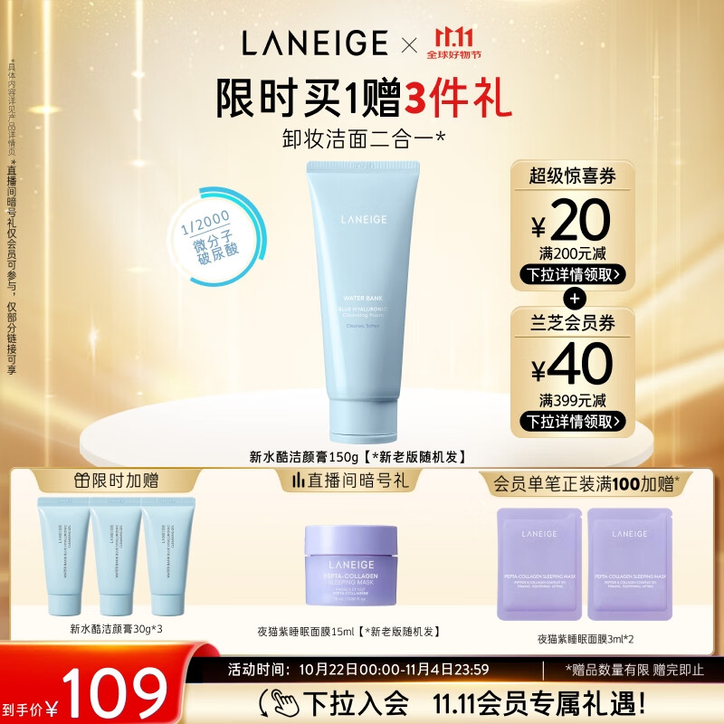 兰芝洗面奶新水酷透明质酸嘭润洁颜膏150g洁面深清洁保湿送生日礼物