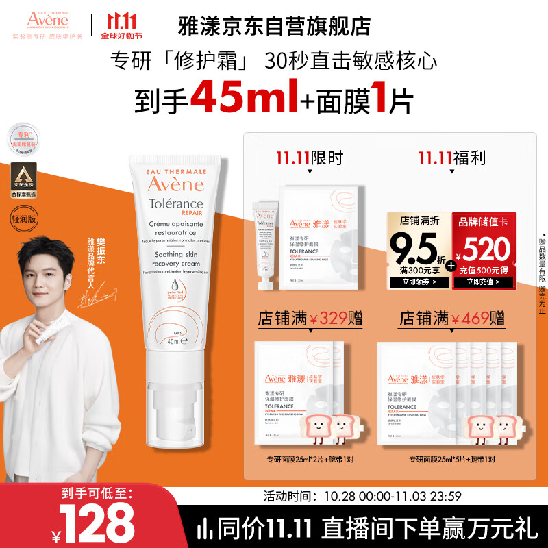 雅漾(Avene)【樊振东同款】专研修护霜轻润40ML舒缓保湿泛红乳液面霜1111礼物