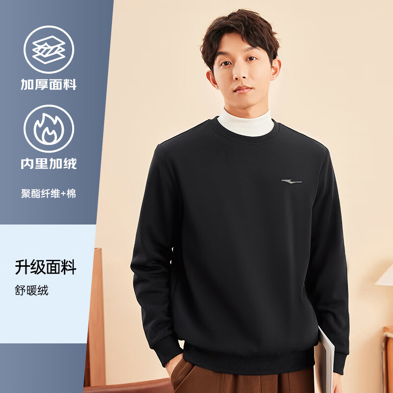 鸿星尔克卫衣男秋冬季新款加绒保暖休闲跑步运动服上衣套头衫长袖卫衣男装 【1067】正黑-加绒款 XL