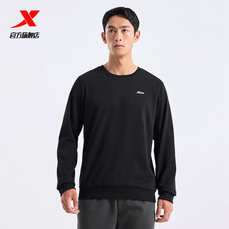 特步钜惠卫衣百搭上衣宽松休闲打底衫卫衣卫裤运动服长袖t恤衫 正黑色-冬款加绒-0133 XL