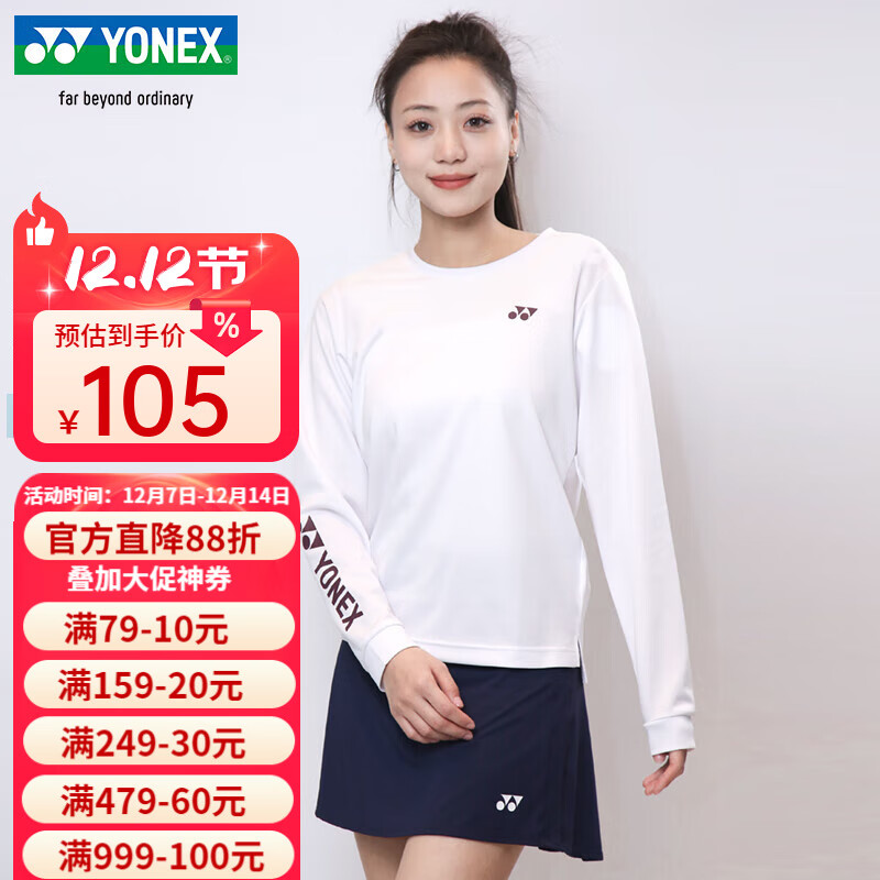 YONEX2025新款尤尼克斯羽毛球服长袖男女速干运动上衣卫衣1153225 女款上衣 2153225BCR 白色 L
