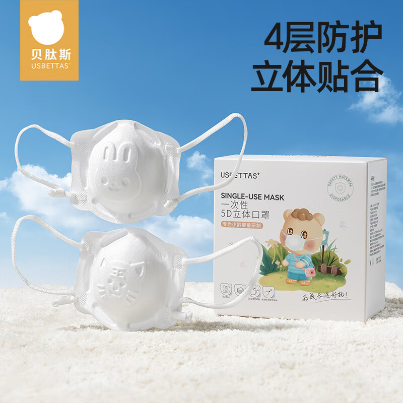 贝肽斯儿童口罩3到6岁宝宝一次性口罩3D立体婴幼儿透气防护专用口耳罩 冬日绮梦(32片装)【7A级抑菌儿童专用】 M码【3-6岁】宽耳款