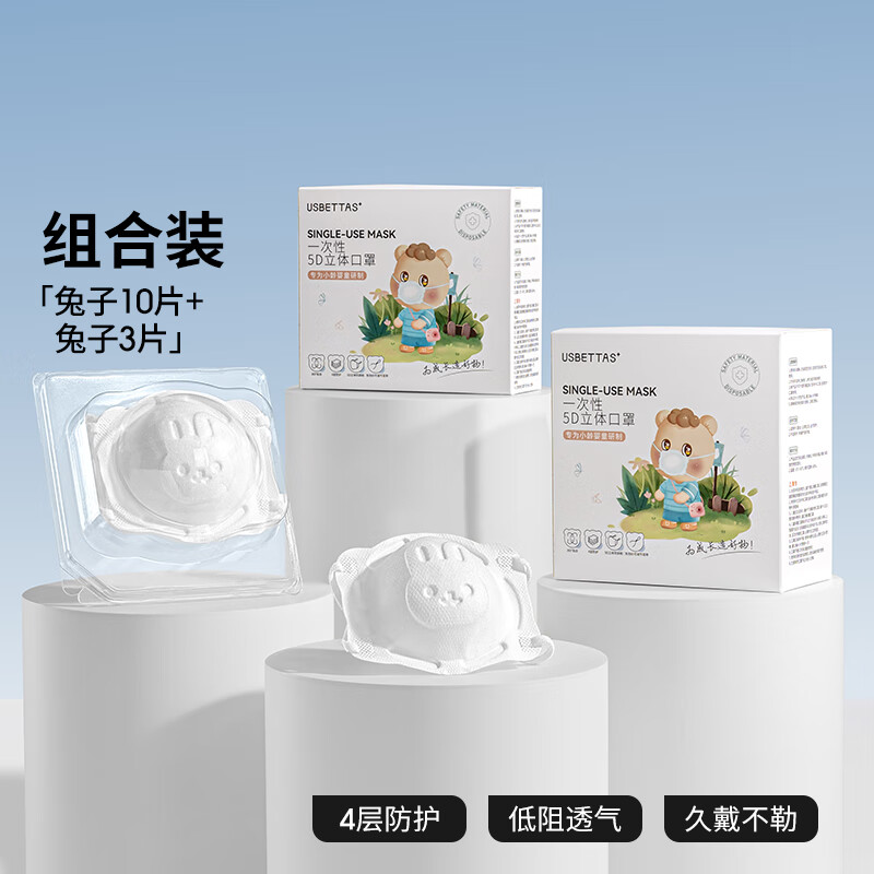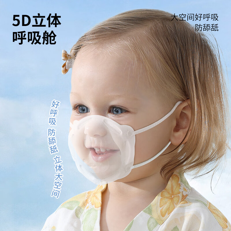 贝肽斯婴幼儿口罩5d立体0到6月-12月1岁儿童宝宝防护专用夏季薄款 小兔子10片【送3片】