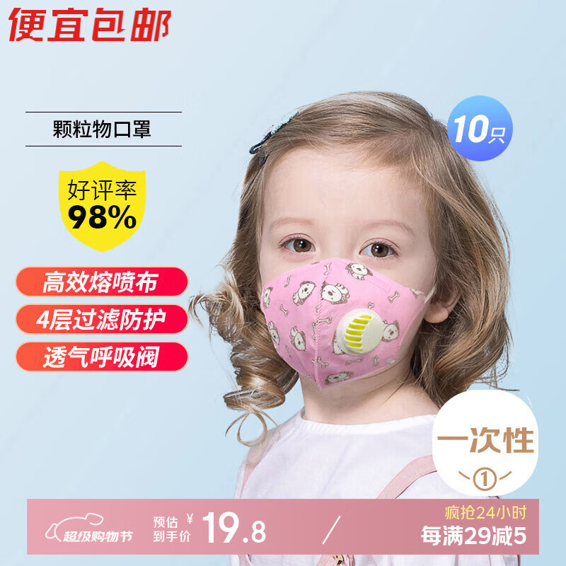 绿驰 10只儿童颗粒物防护口罩 防飞沫粉尘pm2.5带呼吸阀过滤率大于95%