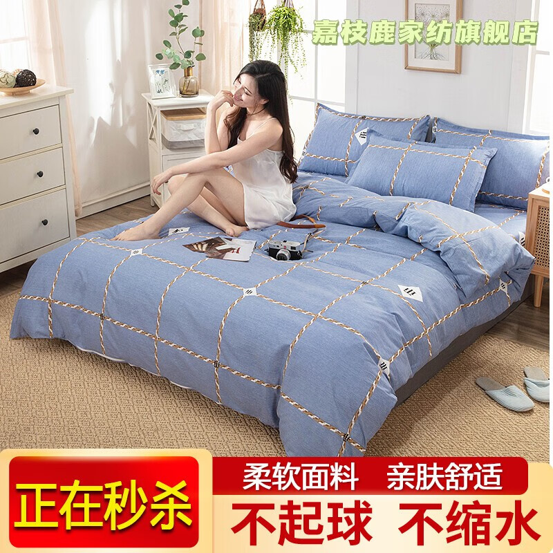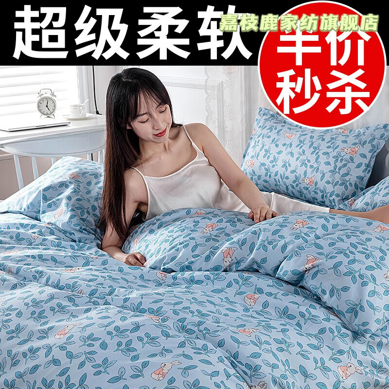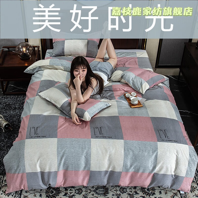 嘉枝鹿2023耐脏被套单件1.5m学生宿舍单双人被罩1.8/2m床上用品三多件套 美好时光 1.5米四件套