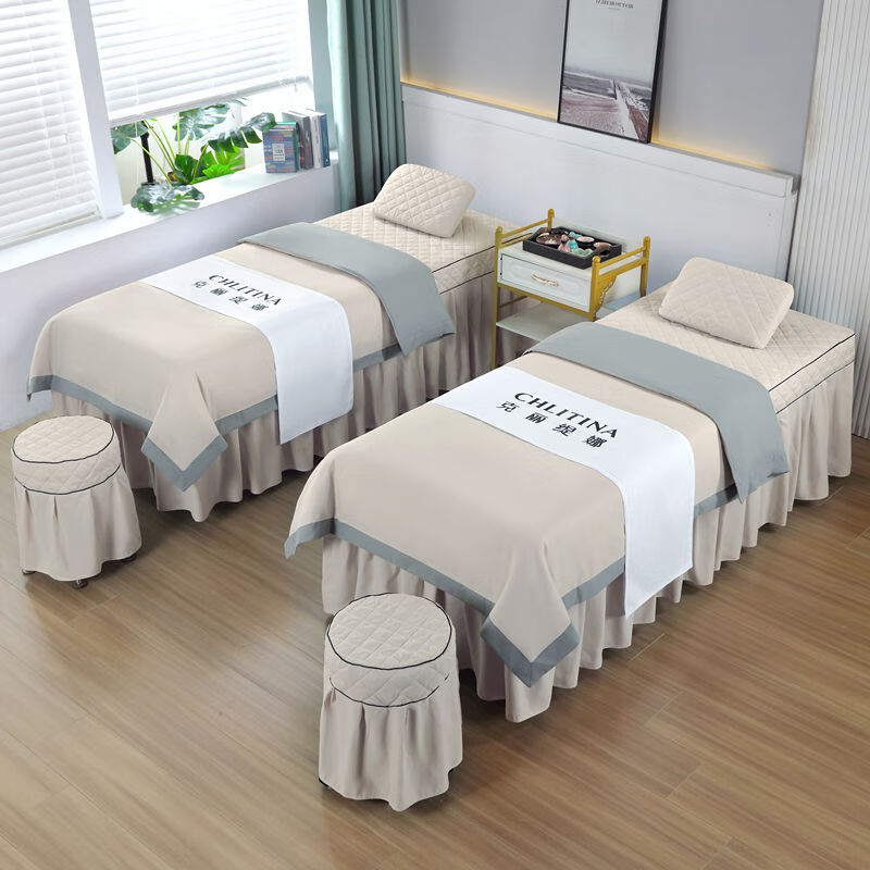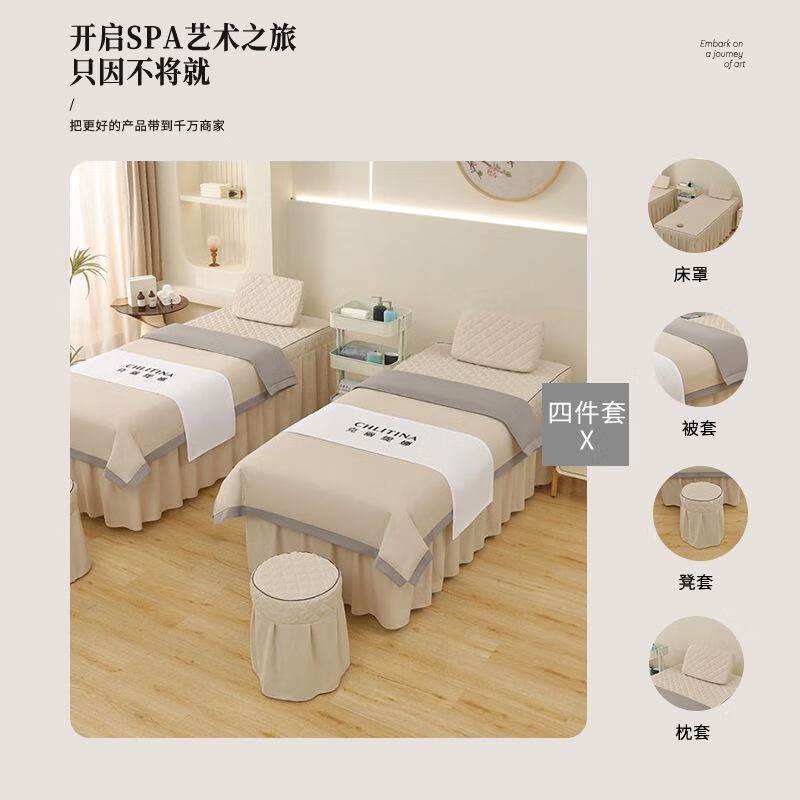 舒炫美容床罩四件套高档轻奢网红美容院专用新款按摩床单床套单件四季 HG拼色-米色 190x80方头四件套【+被芯】
