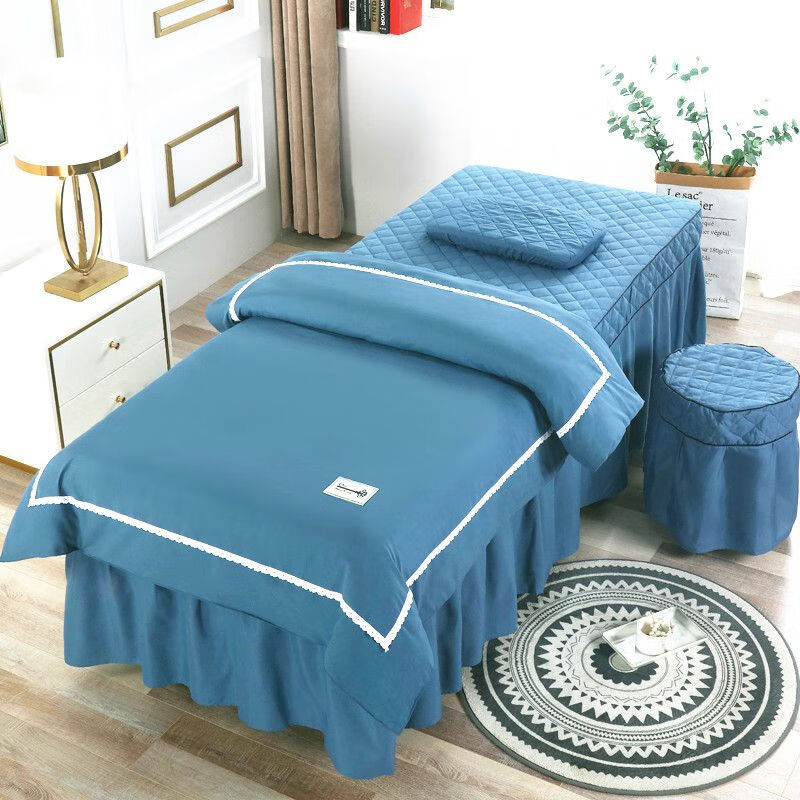舒炫新款美容床罩四件套高档轻奢网红美容院专用按摩床单洗头理疗床套 巴伦-宝蓝色 185x70方头四件套【+被芯】