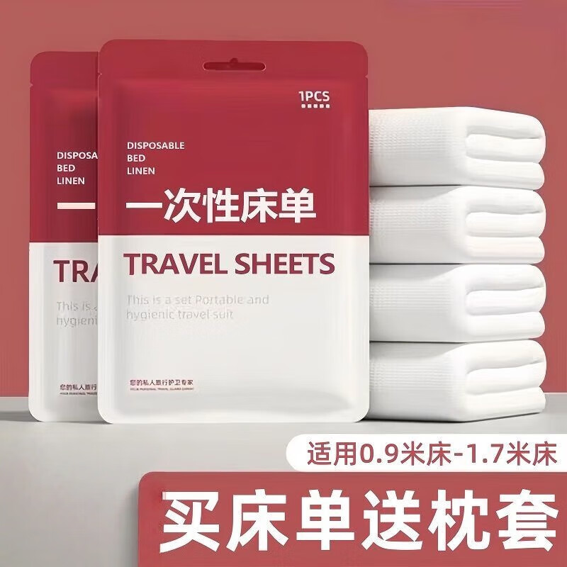 一次性床单枕套酒店四件套出差旅游火车卧铺隔脏免洗柔软亲肤裸睡 一次性床单【1包】独立包装(必买款) 印花款180cm*220cm
