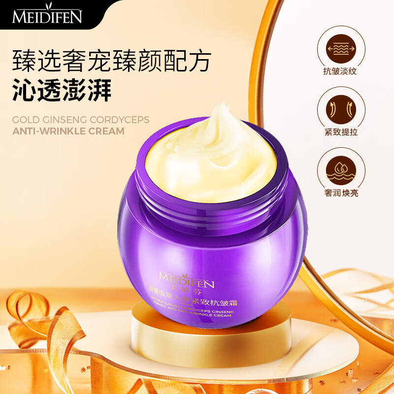 金奢虫草人参紧致抗皱霜淡化细纹改善肤质暗沉补水保湿男女护肤品 抗皱霜50g*1瓶