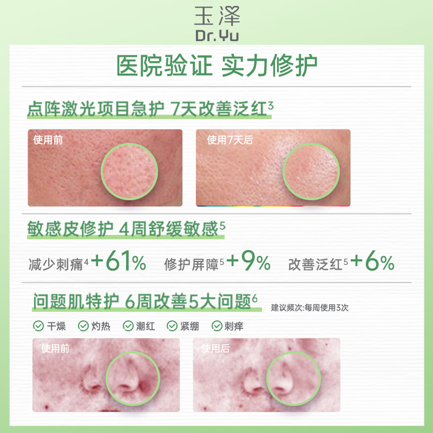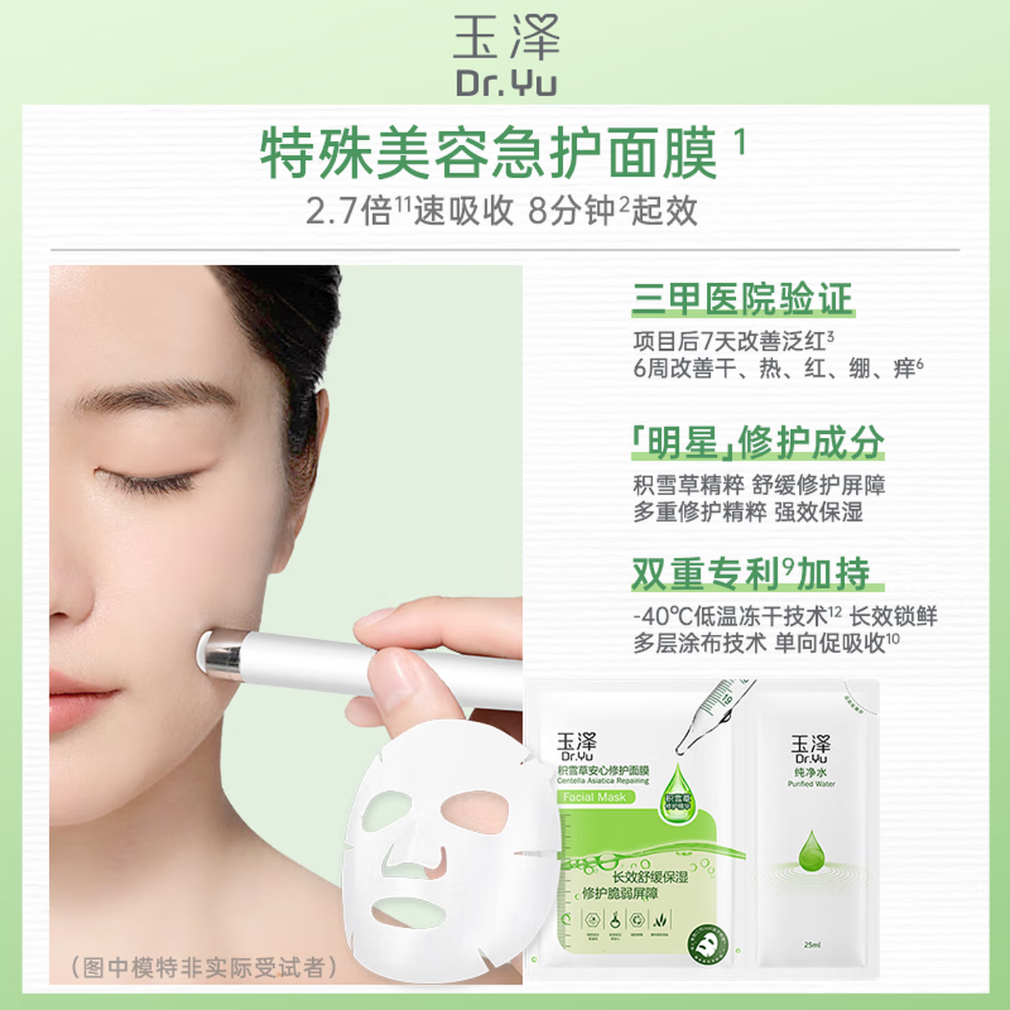 玉泽(Dr.Yu) 面膜 积雪草安心修护面膜玻尿酸补水保湿舒缓晒后修护敏感肌适用 新升级1片