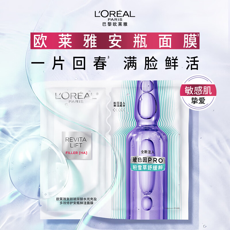 欧莱雅安瓶面膜4.0 20片补水保湿修护舒缓护肤品情人节新年礼物