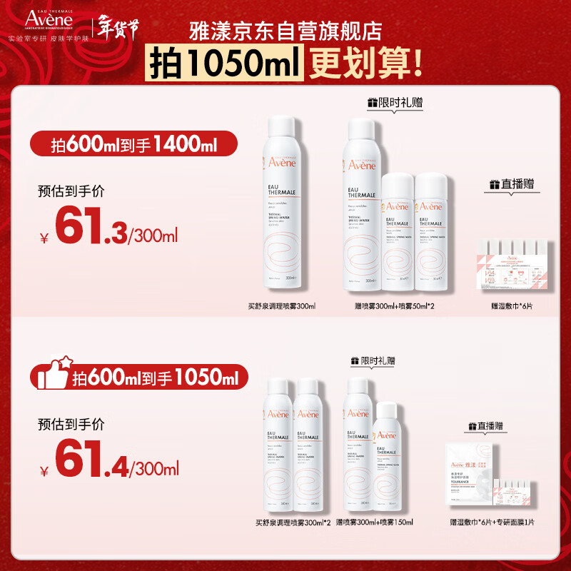 雅漾(Avene)舒泉保湿喷雾300ML 补水舒缓爽肤水湿敷水敏肌护肤水大喷新年礼物