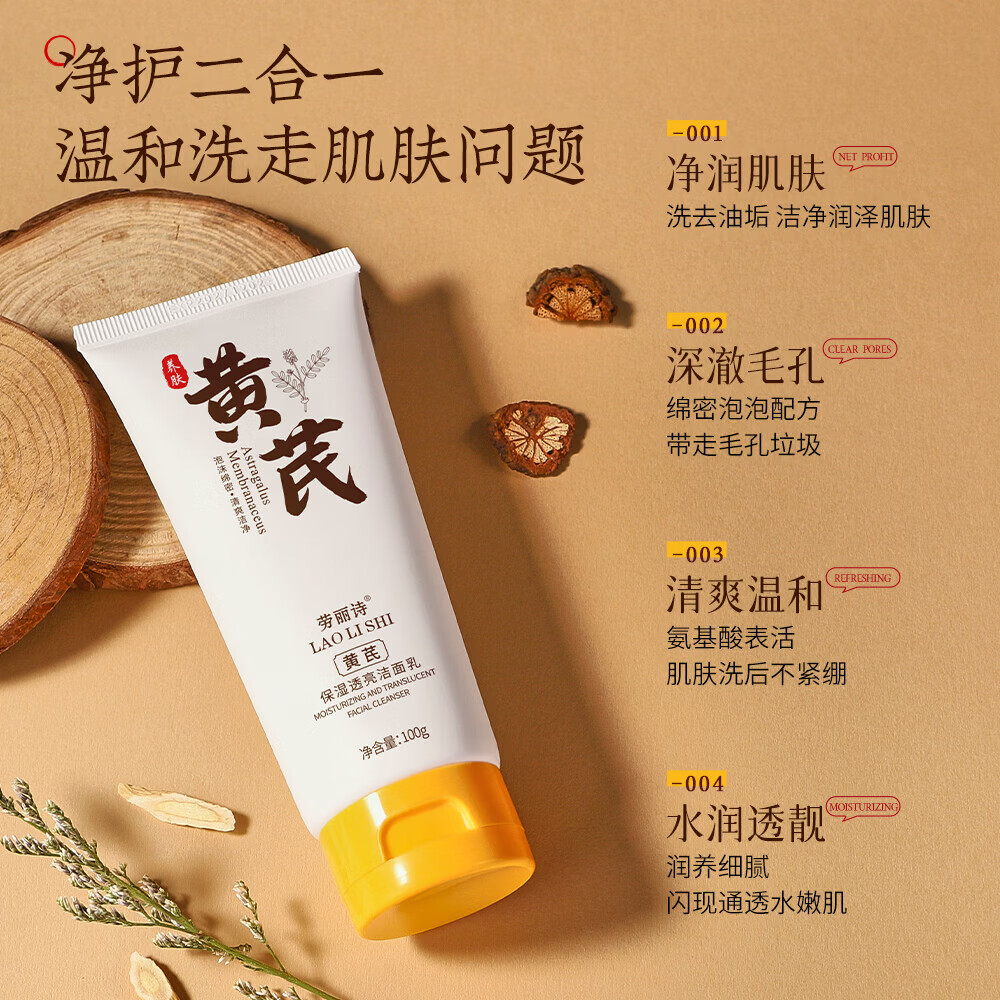 黄芪洁面乳深层清洁保湿补水绵密泡沫控油不油腻养肤舒缓 1瓶 黄芪霜保湿洗面奶