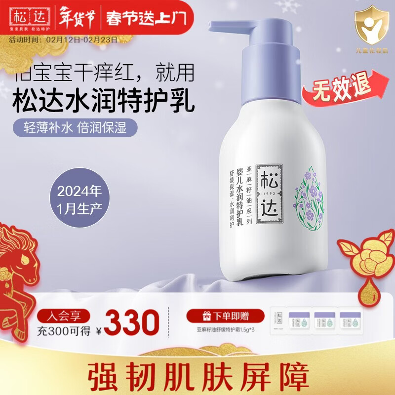 松达婴儿水润特护乳宝宝身体乳亚麻籽油儿童乳液补水润肤保湿 【倍润保湿】特护乳118g
