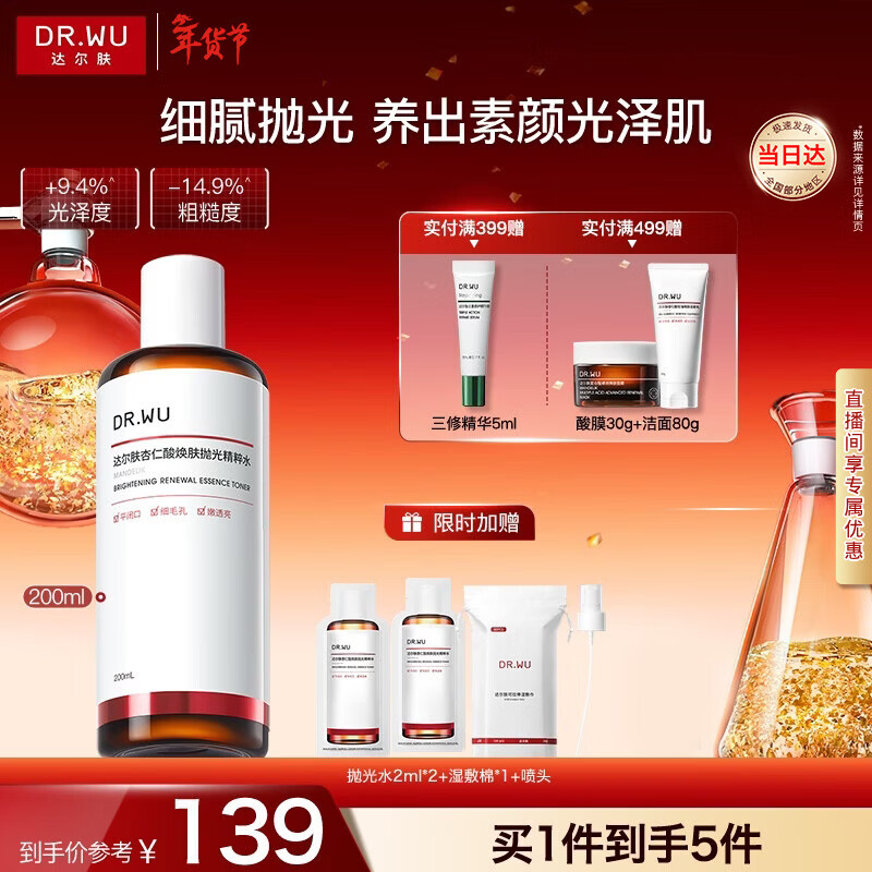 达尔肤(DR.WU)杏仁酸焕肤抛光精粹爽肤水200ml果酸控油去角质闭口补水保湿提亮