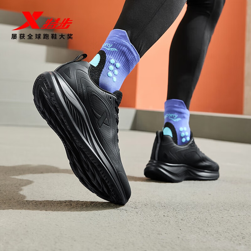 特步跑步鞋男鞋25年秋冬革面跑鞋耐磨防滑轻盈耐磨休闲运动通勤鞋子男 黑 42