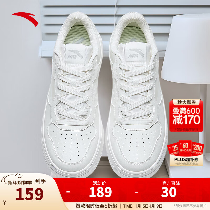 安踏轻松板鞋男鞋冬季透气厚底小白鞋纯白色休闲鞋轻便运动鞋子男 【轻松1】 纸莎白-2 44