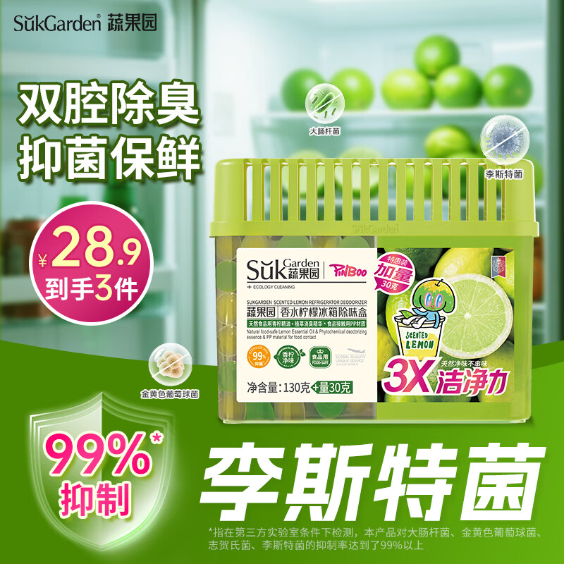 蔬果园香水柠檬冰箱除味盒抑菌清洁除味剂植萃除臭剂160g/盒