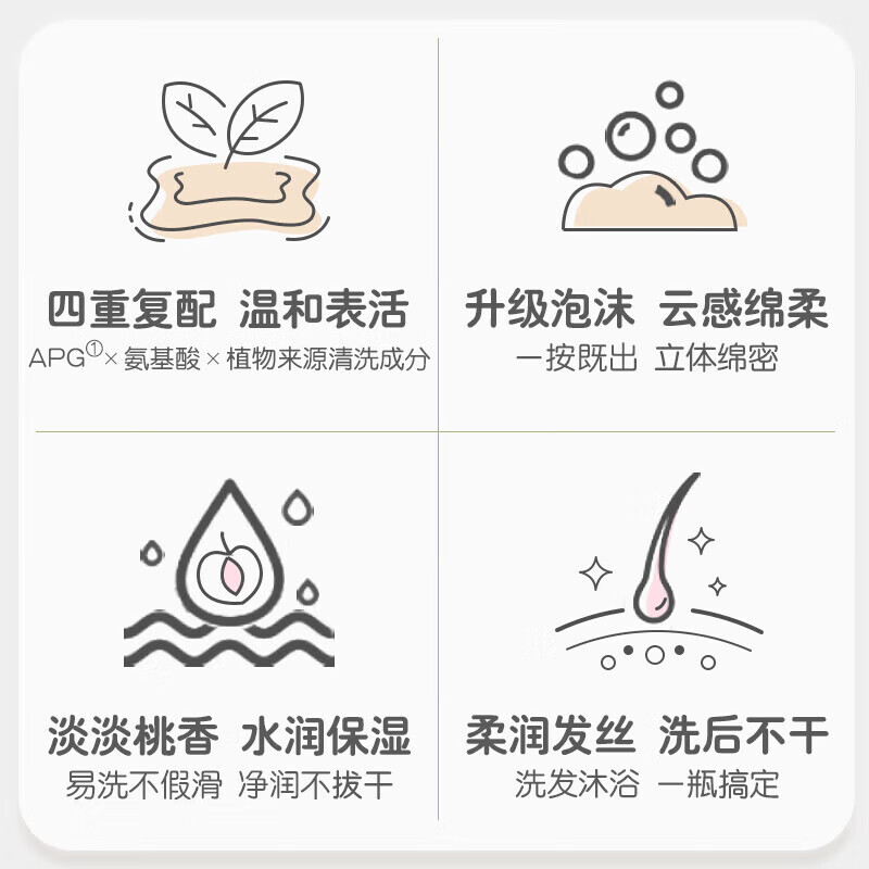 贝亲(Pigeon)洗发沐浴二合一 儿童沐浴露 婴儿沐浴露洗发水二合一 桃叶精华 洗发沐浴泡沫促销装900ml