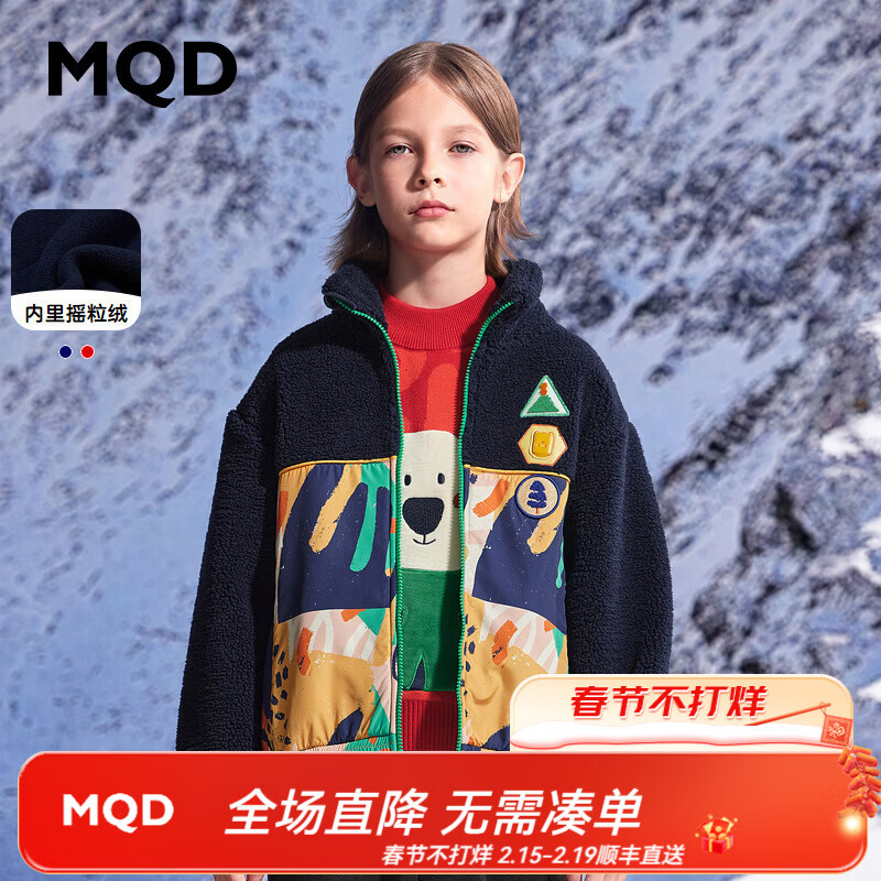 MQD男童满版内里摇粒绒立领外套藏青---------------------